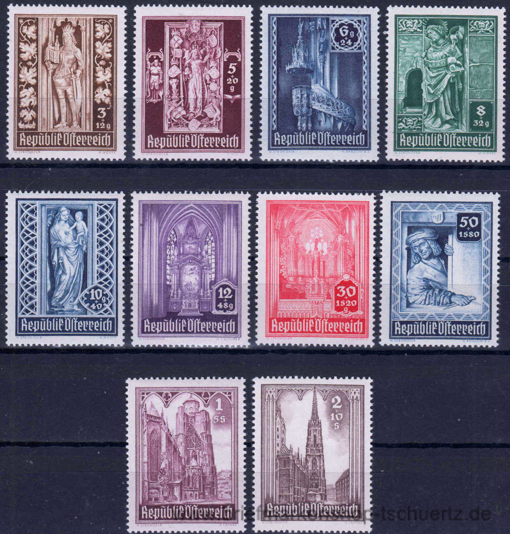 1946, Wiederaufbau des Stephansdomes, WienSatz (10 W.), postfrisch