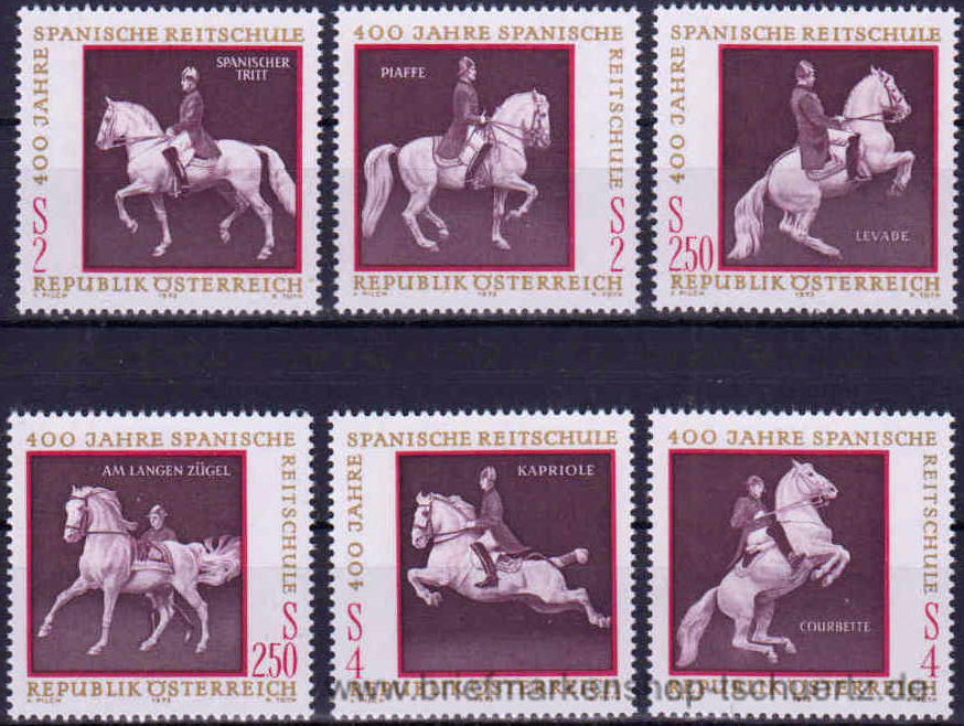 1972, 400 Jahre Spanische Reitschule Satz (6 W.), Marken aus Block, postfrisch