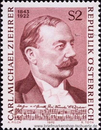1972, 50. Todestag von Carl Michael Ziehrer Satz (1 W.), postfrisch