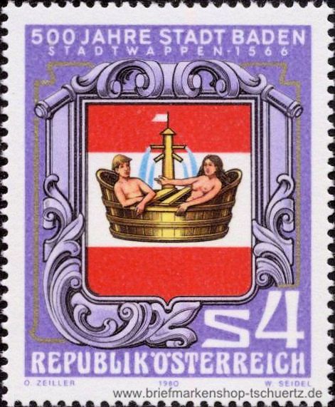 1980, 500 Jahre Stadt Baden Satz (1 W.), postfrisch
