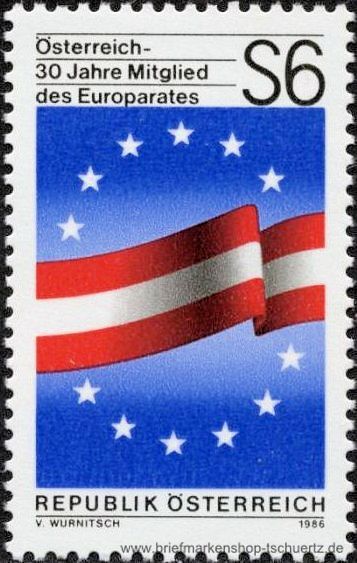 1986, Österreich - Mitglied des Europarates Satz (1 W.), postfrisch