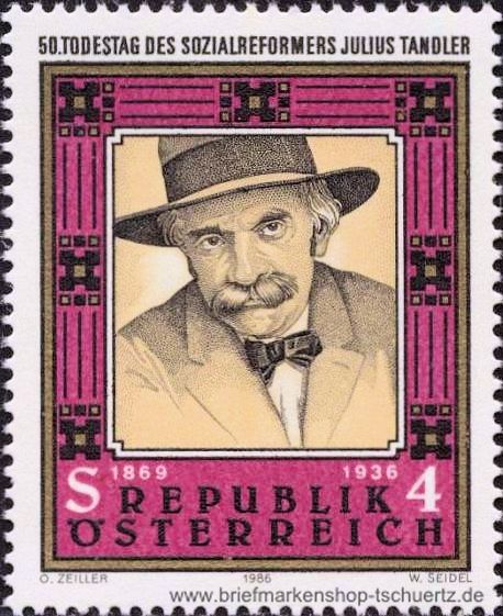 1986, 50. Todestag von Julius TandlerSatz (1 W.), postfrisch