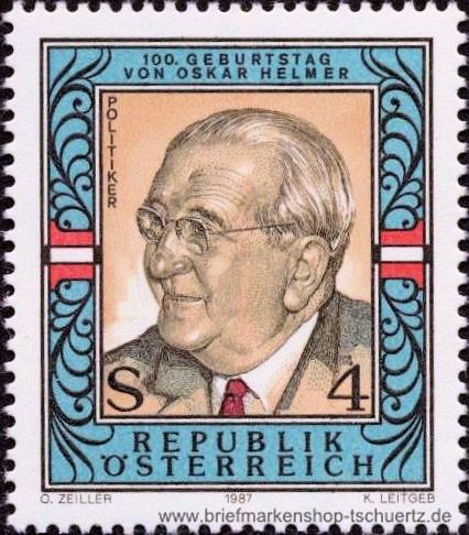1987, 100. Geburtstag von Oskar HelmerSatz (1 W.), postfrisch