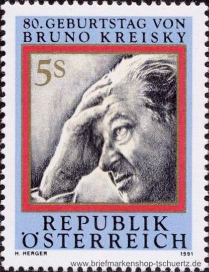 1991, 80. Geburtstag von Bruno KreiskySatz (1 W.), postfrisch