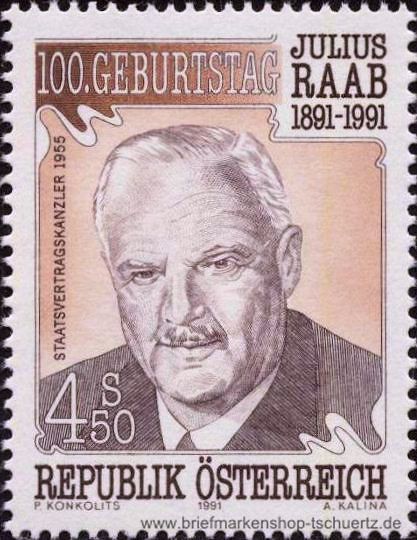 1991, 100. Geburtstag von Julius RaabSatz (1 W.), postfrisch