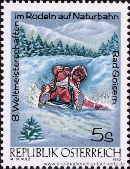 1992, Weltmeisterschaften im Rodeln auf NaturbahnSatz (1 W.), postfrisch