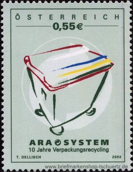 2003, 10 Jahre Verpackungsrecycling im ARA-System Satz (1 W.), postfrisch