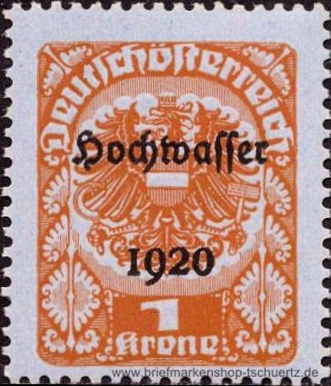1921, Hochwassergeschädigte1 Kr (+ 2 Kr)Einzelmarke, postfrisch
