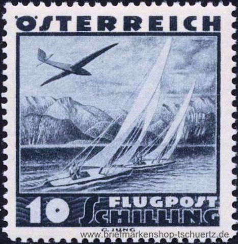 1935, Flugzeug über Landschaften 10 S - Segelflieger und Segelboote am Attersee Einzelmarke, postfrisch