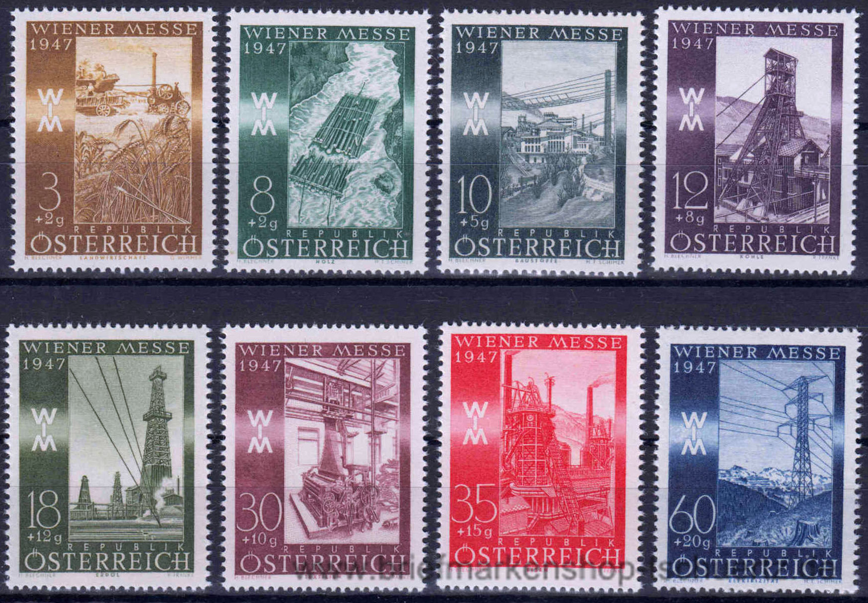 1947, Wiener FrühjahrsmesseSatz (8 W.), postfrisch