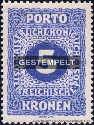 1916, Ziffern5 Kr - gezähnt K 12 1/2 : 13Einzelmarke, gestempelt