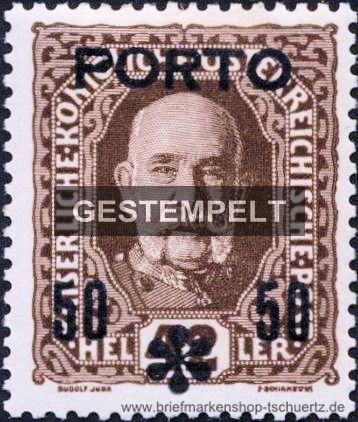 1917, Kaiser Franz Joseph mit Aufdruck PORTOAufdruck: 50 H auf 42 HEinzelmarke, gestempelt