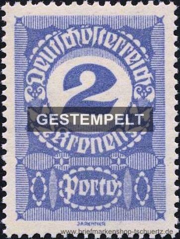 1920, Ziffern2 Kr - weißes PapierEinzelmarke, gestempelt