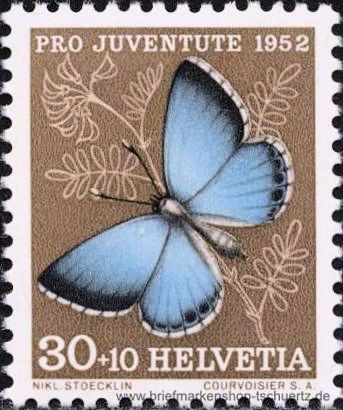 1952, Pro Juventute: Insekten30 (C) + 10 (C) - Silbergrauer BläulingEinzelmarke, postfrisch