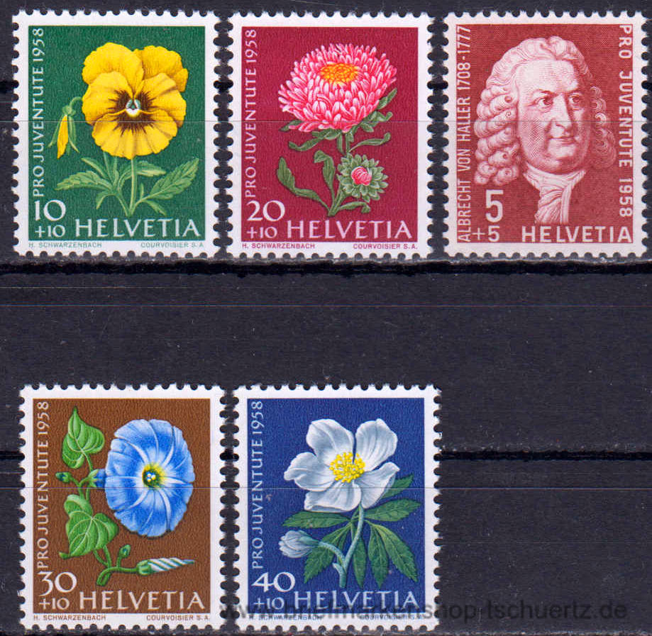 1958, Pro Juventute: Wiesen- und GartenblumenSatz (5 W.), postfrisch