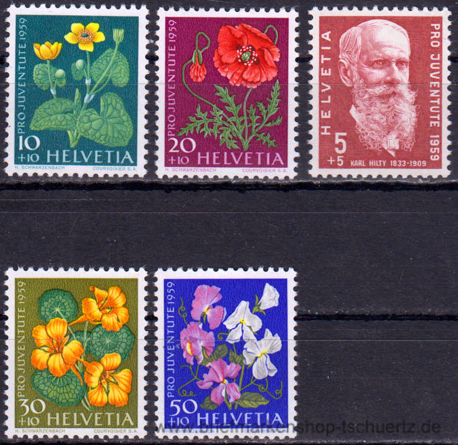 1959, Pro Juventute: Wiesen- und GartenblumenSatz (5 W.), postfrisch