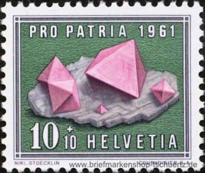1961, Pro Patria: Mineralien und Versteinerungen 10 (C) + 10 (C) - Spinellstufe Einzelmarke, postfrisch