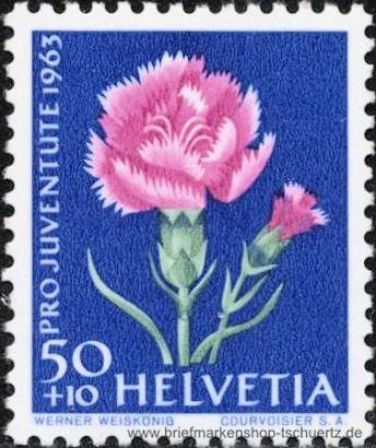 1963, Pro Juventute: Wiesen- und Gartenblumen50 (C) + 10 (C) - GartennelkePapier phosphoreszierendEinzelmarke, postfrisch