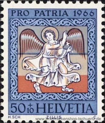 1966, Pro Patria: Deckengemälde50 (C) + 10 (C) - Der wegweisende EngelEinzelmarke, postfrisch