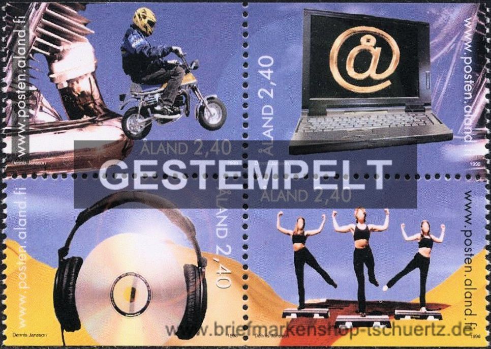 1998, JugendaktivitätenSatz (4 W.), Viererblock, gestempelt