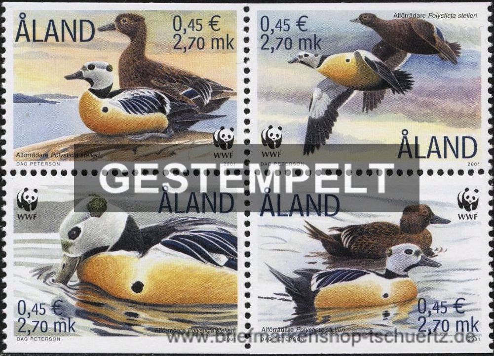 2001, Weltweiter Naturschutz: ScheckenteSatz (4 W.), Viererblock, gestempelt