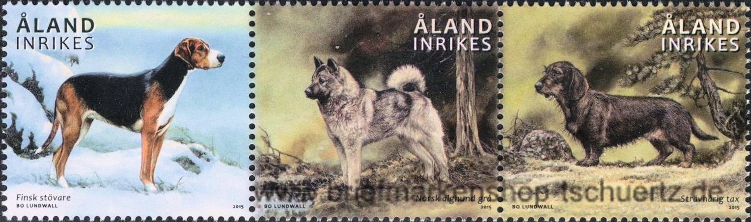 2015, JagdhundeSatz (3 W.), Dreierstreifen, postfrisch
