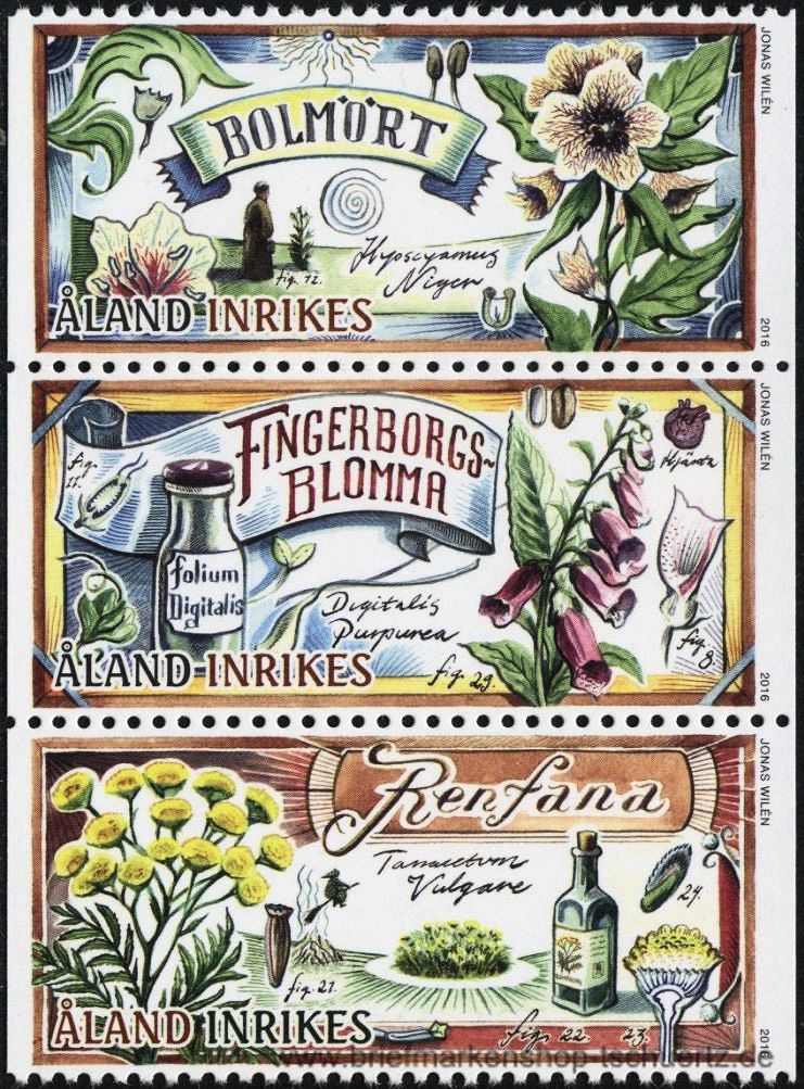 2016, HeilpflanzenSatz (3 W.), Dreierstreifen, postfrisch