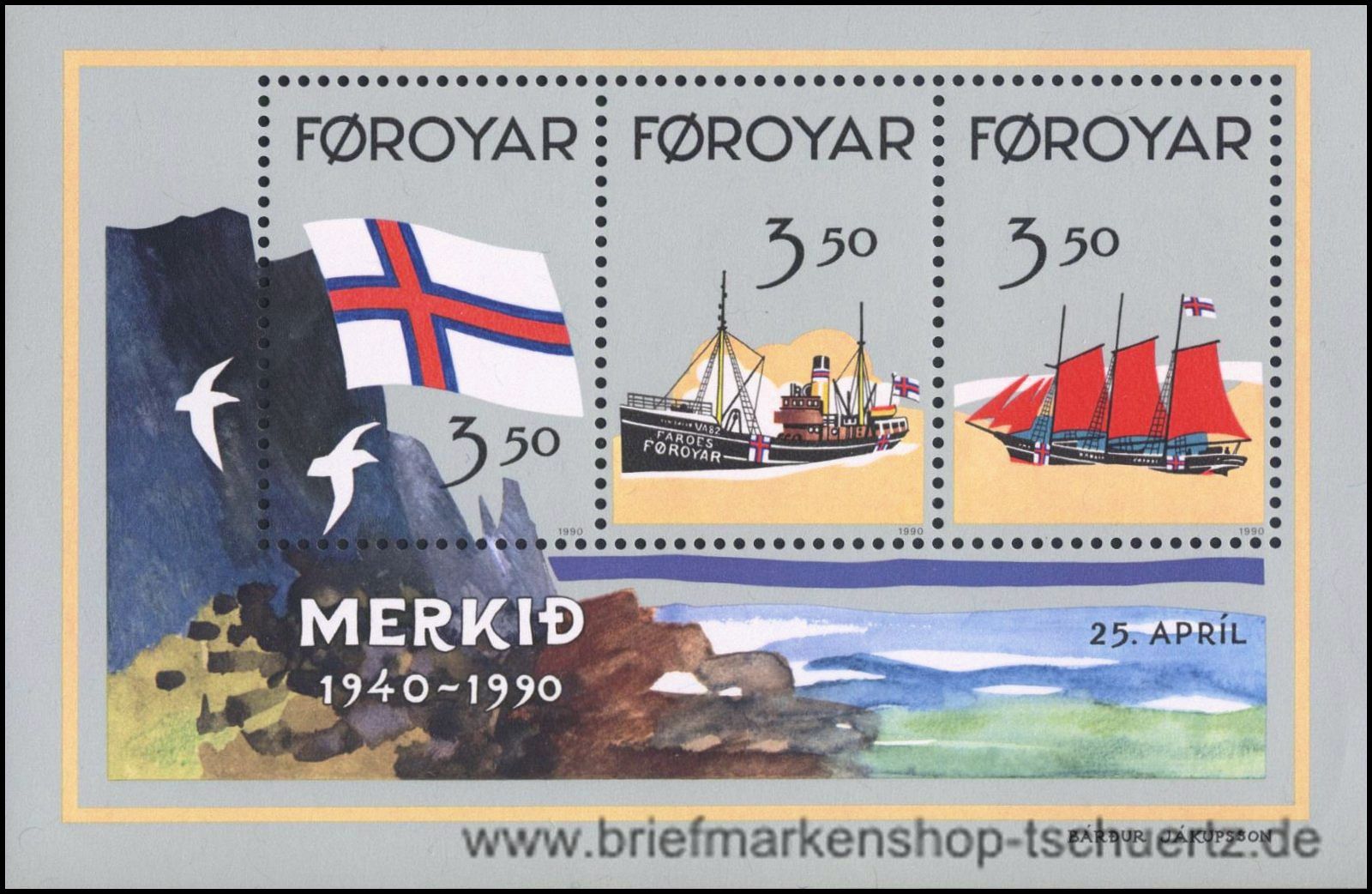 1990, 50 Jahre Flagge der Färöer-InselnBlockausgabe, postfrisch