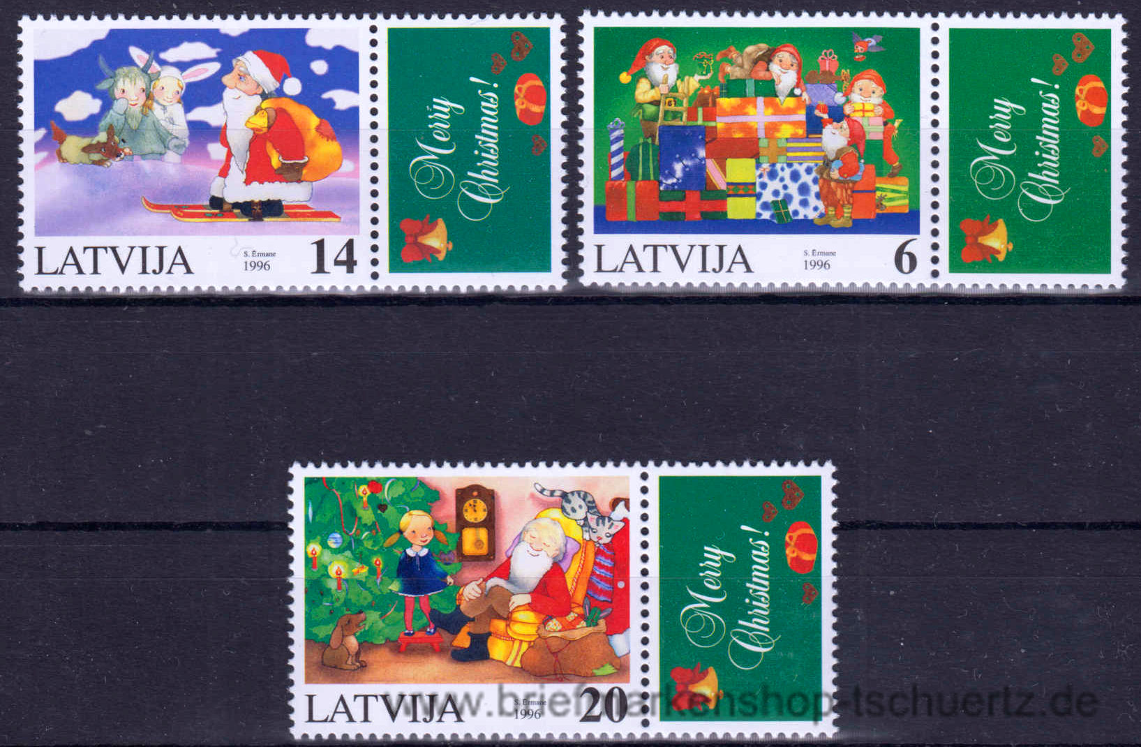 1996, WeihnachtenSatz (3 W.), Marken mit Zierfeld, postfrisch