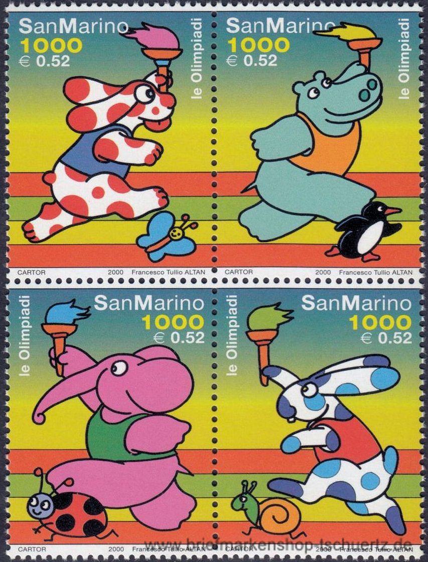 2000, Olympische Sommerspiele, Sydney Satz (4 W.), Viererblock, postfrisch