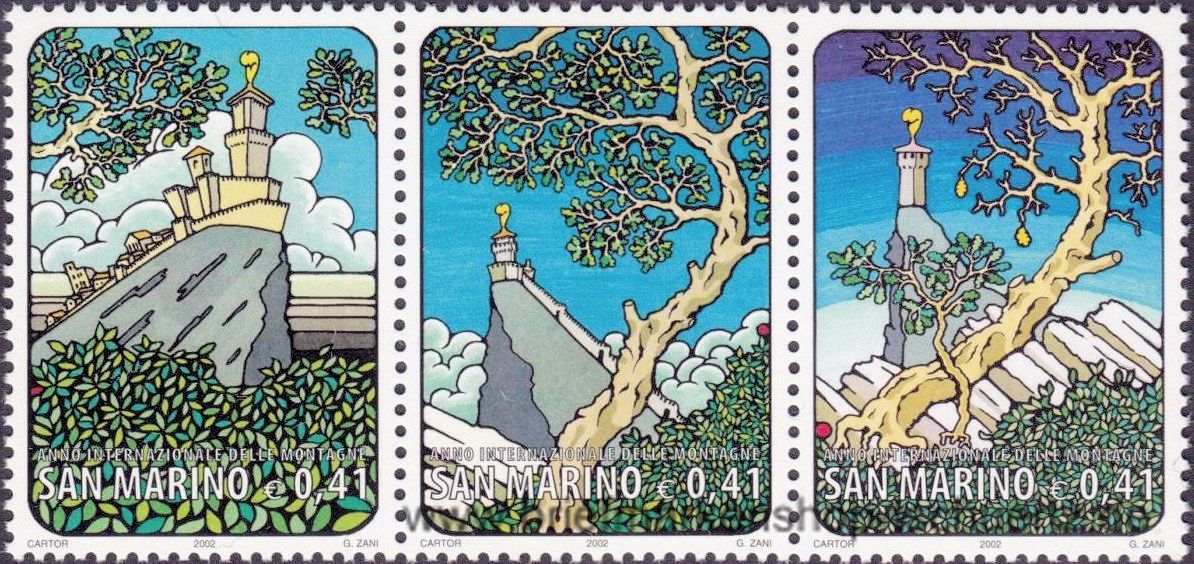 2002, Jahr der Berge Satz (3 W.), Dreierstreifen, postfrisch