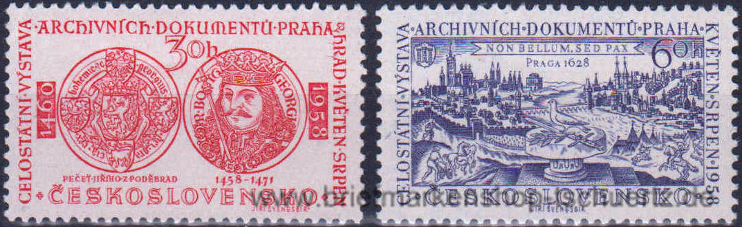 1958, Ausstellung der ArchivdokumenteSatz (2 W.), postfrisch
