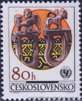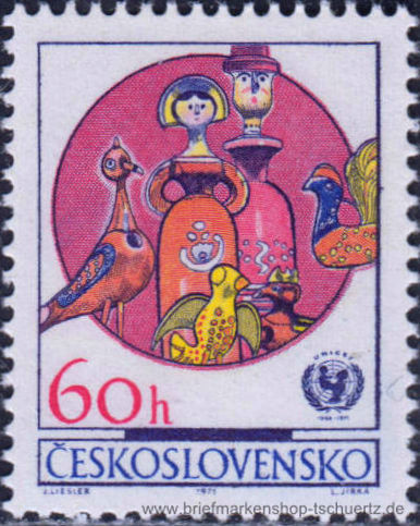 1971, Volkskunstmit MiNr. 2039 a: Rahmen und UNICEF-Emblem dunkelblauviolettSatz (6 W.), postfrisch