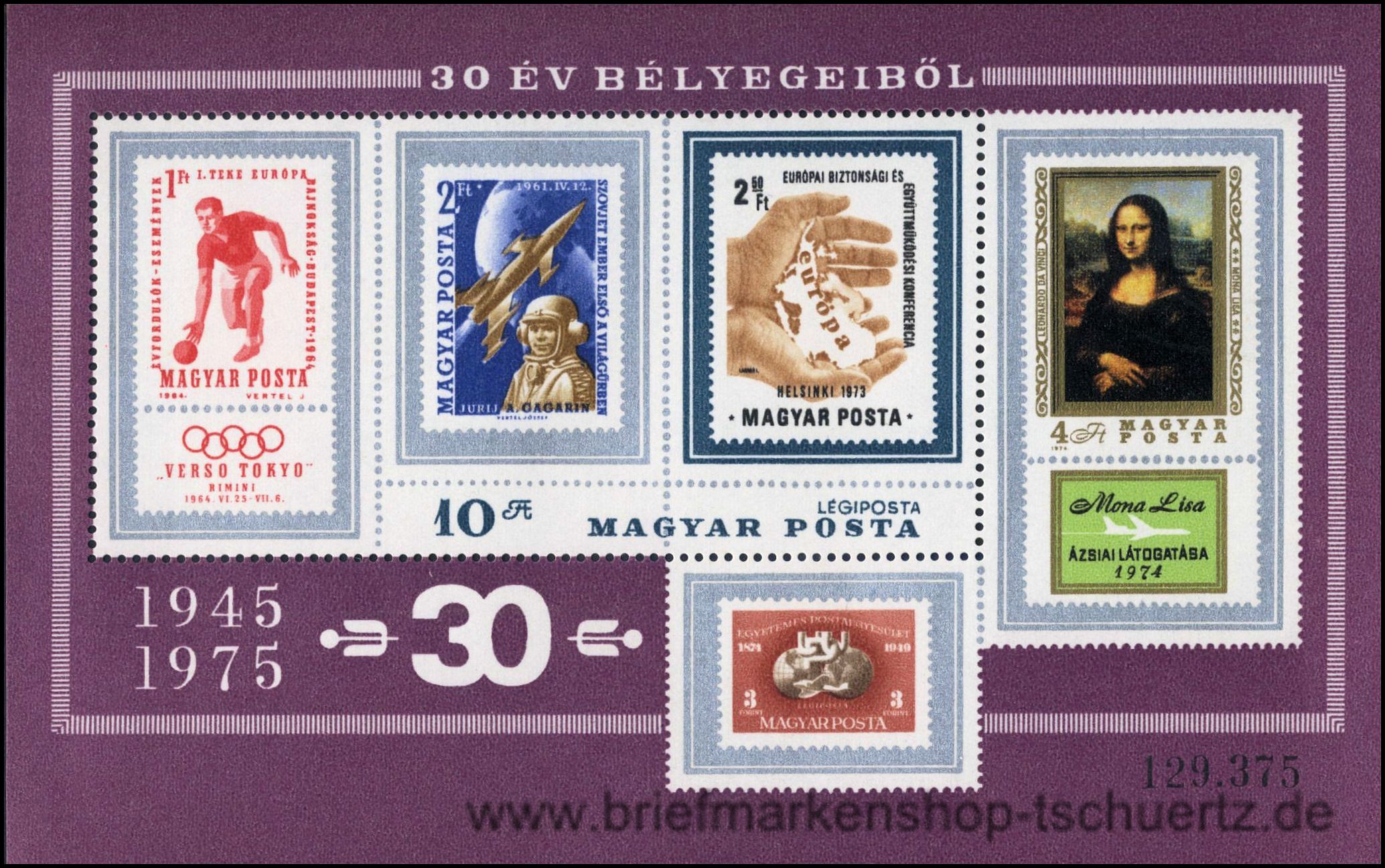 1975, Ungarische Briefmarken gezähntBlockausgabe, postfrisch