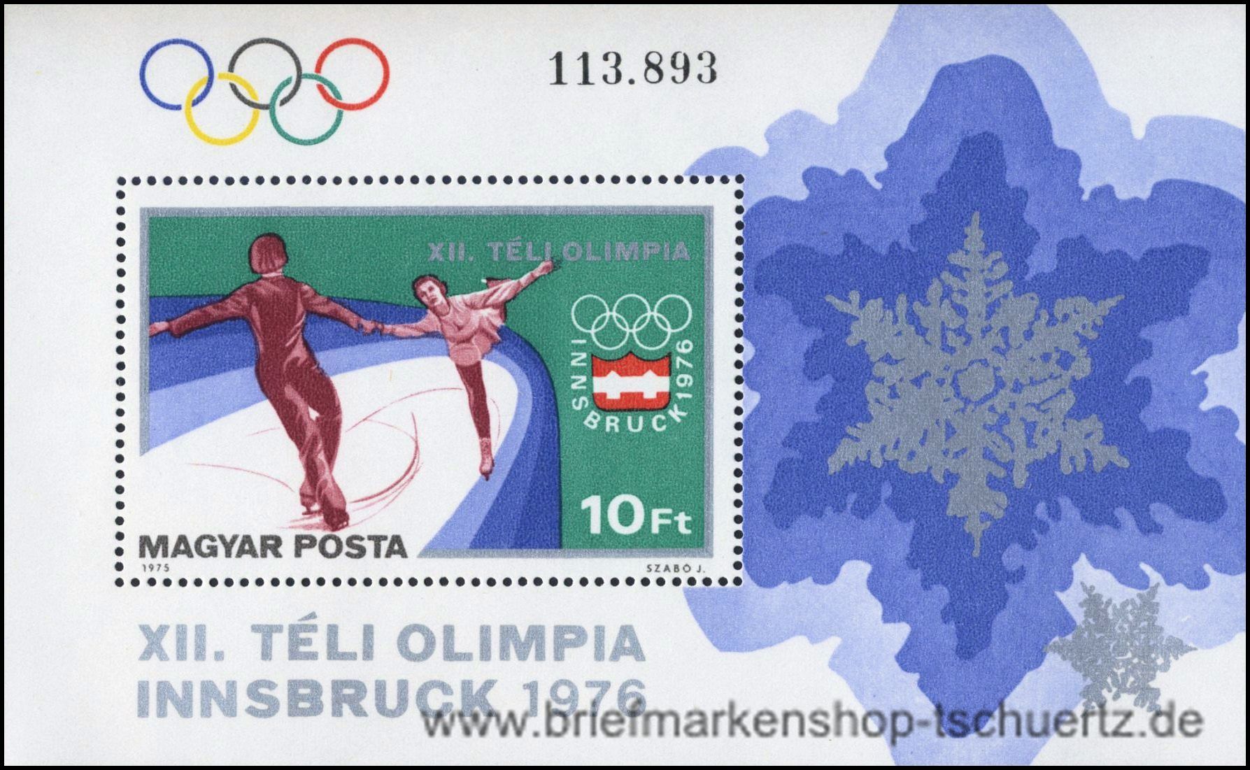 1975, Olympische Winterspiele, Innsbruck gezähntBlockausgabe, postfrisch