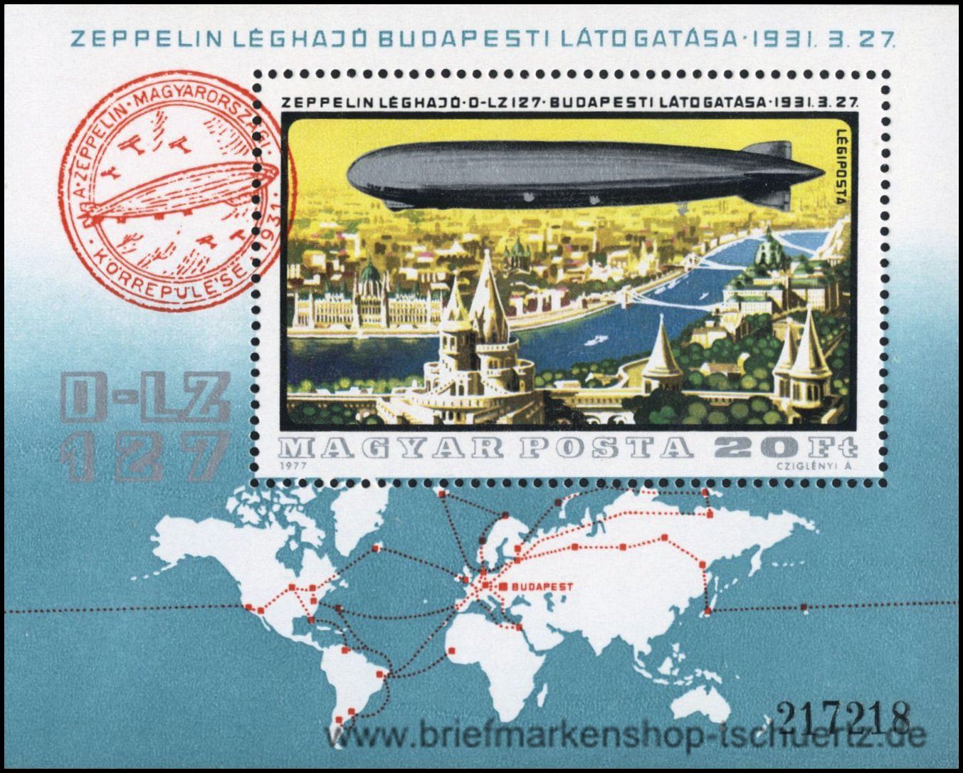 1977, Geschichte des Luftschiffes gezähntBlockausgabe, postfrisch