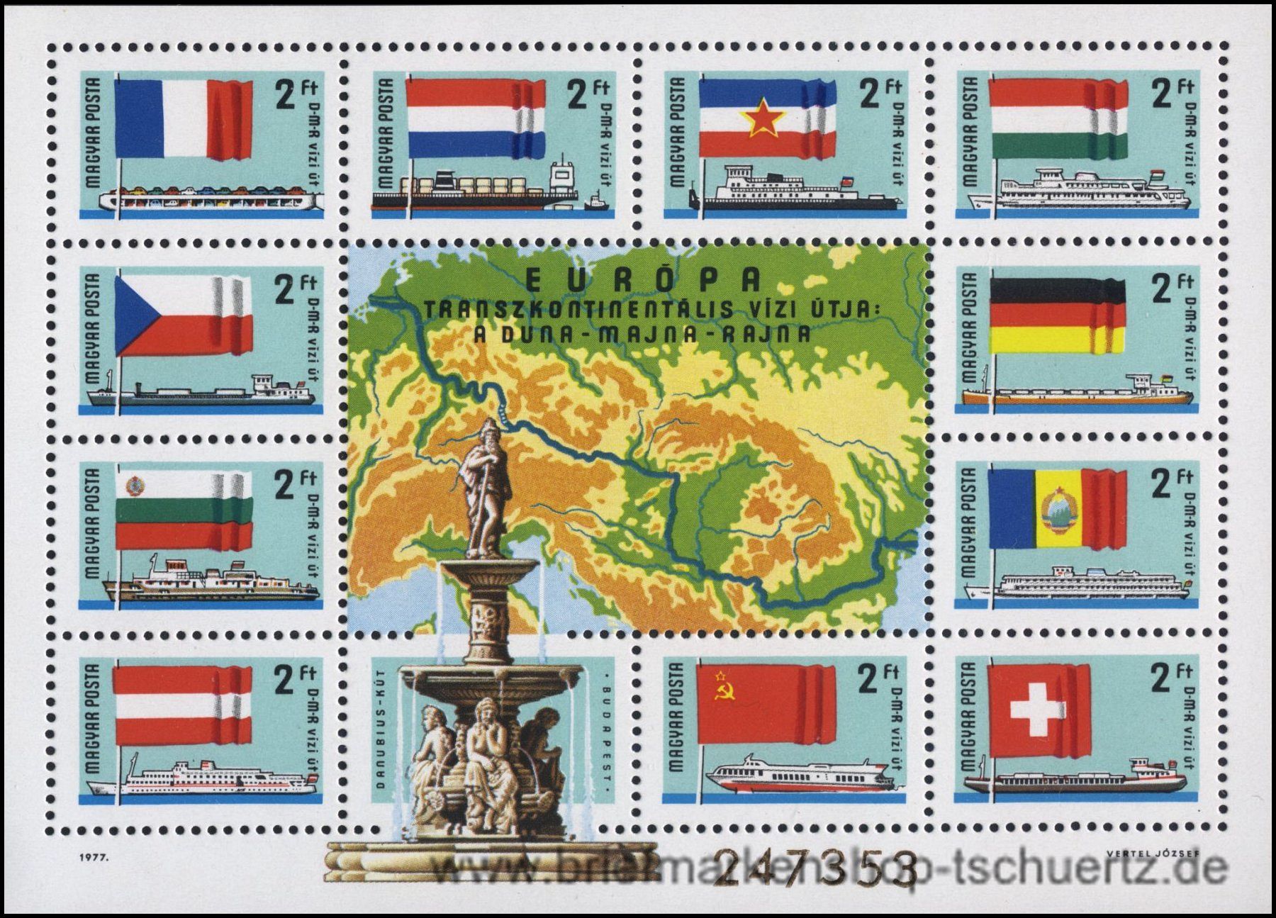 1977, Donau-Main-Rhein-Schifffahrt gezähntBlockausgabe, postfrisch