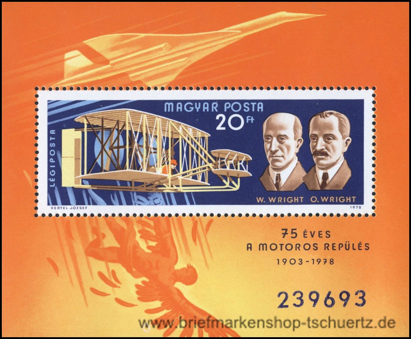 1978, 75 Jahre Motorflug gezähntBlockausgabe, postfrisch