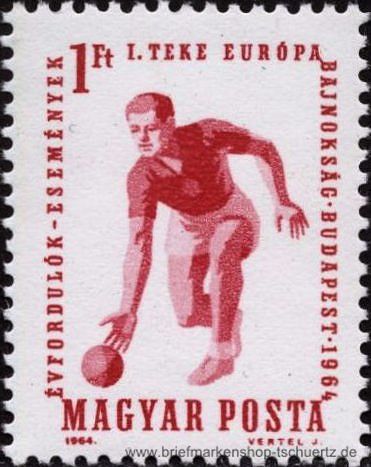 1964, 1. Europameisterschaften im KegelngezähntSatz (1 W.), postfrisch