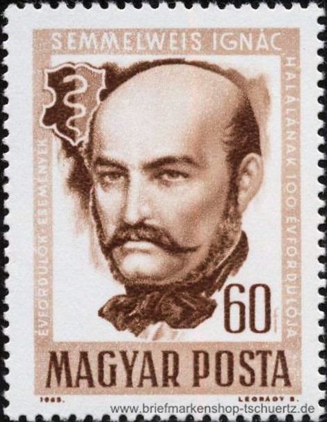 1965, 100. Todestag von Ignaz SemmelweisgezähntSatz (1 W.), postfrisch