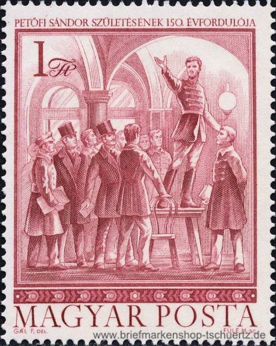 1972, Sandor Petöfi gezähntSatz (3 W.), postfrisch