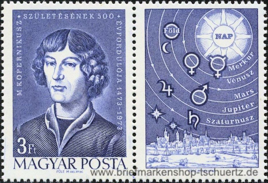 1973, Nikolaus Kopernikus gezähntSatz (1 W.), Marke mit Zierfeld, postfrisch
