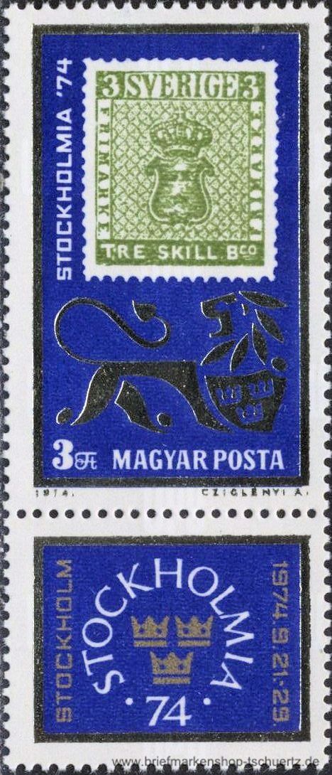 1974, Briefmarkenausstellung STOCKHOLMIA gezähntSatz (1 W.), Marke mit Zierfeld, postfrisch