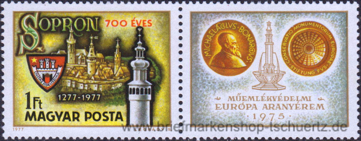 1977, Stadt Sopron (Ödenburg) gezähntSatz (1 W.), Marke mit Zierfeld, postfrisch