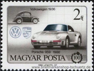 1986, 100 Jahre Automobil gezähntSatz (6 W.), postfrisch