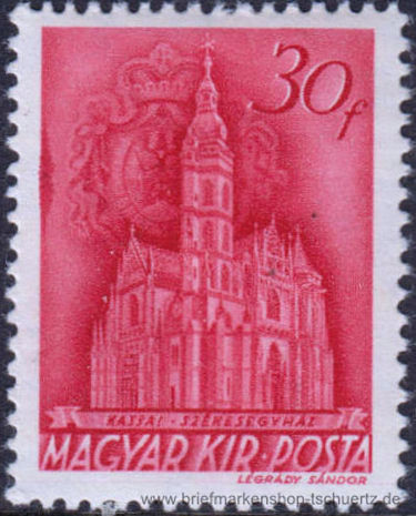1943, Freimarken: Helden und Stephanskrone30 f - Kathedrale zu KassaEinzelmarke, postfrisch