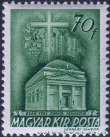 1943, Freimarken: Helden und Stephanskrone70 f - Evangelische Hauptkirche in BudapestEinzelmarke, postfrisch