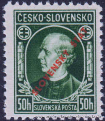 1939, Freimarken: Andrej Hlinka 50 H - gezähnt L 10 1/2 Einzelmarke, postfrisch