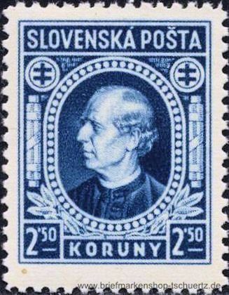 1939, Freimarken: Andrej Hlinka2.50 Ks - mit Wasserzeichen, gezähnt L 12 1/2Einzelmarke, postfrisch