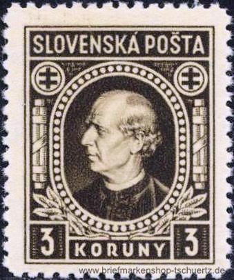 1939, Freimarken: Andrej Hlinka3 Ks - mit Wasserzeichen, gezähnt L 12 1/2Einzelmarke, postfrisch